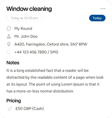 Generate and send professional invoices automatically. Get paid faster with less admin work, so you can focus on what you do best-delivering spotless results. Most users save 3-4 hours per week on invoicing alone and improve cash flow by getting paid 40% faster.